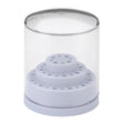 Small tiered plastic stand for holding up to 24 tools with 3/32" shanks and 24 tools with 1/8" shanks. Clear plastic cover keeps tools dust-free without hiding them from view.