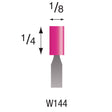 Besides the advantages of being friable and cool cutting, Pink Mounted Stones exhibit markedly better form holding characteristics, making them exceptionally durable, while giving the sharp cut that is needed. All are mounted on 1-1/2" long, 1/8" diameter plated steel shanks.  Available in 3 grits 80, 100 and 120 depending on the style of the stone.