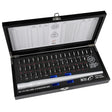 This precision calibrated True Ring Sizing Set (3mm) offers consistent, dependable measuring when sizing rings time after time. The high quality and the polished, professional look will impress your customers on the other side of the counter while reducing costly, extensive errors when measuring the size needed and the end result being totally different. Sold as a complete set with matching aluminum mandrel. Sizes 1-16 in half sizes and sizes 4 up through and including 11 are in quarter sizes.